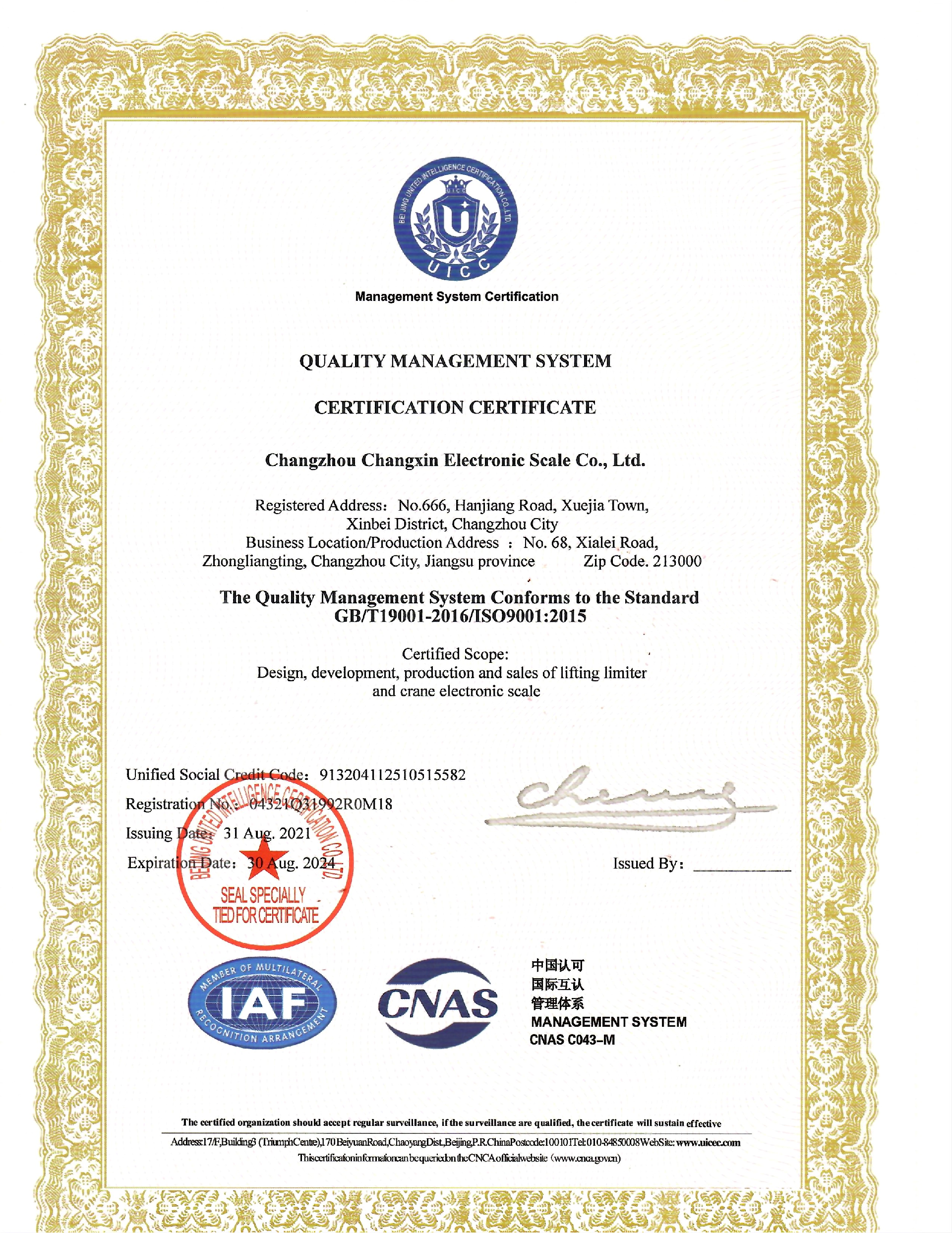 常州市常欣電子衡器有限公司創(chuàng)建于1986年12月,是一家集自主設(shè)計(jì)開發(fā)、生產(chǎn)制造、銷售和服務(wù)于一體的機(jī)電類民營(yíng)股份制企業(yè)。于2018年7月,又成立了常州常欣起重物聯(lián)科技有限公司,并獲得國(guó)家級(jí)高新技術(shù)企業(yè)稱號(hào),目前我們是兩塊牌子一套班子,在同一個(gè)廠區(qū)內(nèi)生產(chǎn)辦公。并于2022年1月25日整體搬遷至常州市新北區(qū)漢江路666號(hào)新址。
